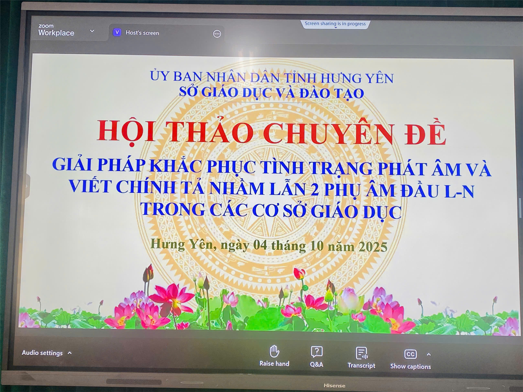 Sáng nay, ngày 4/10/2025, toàn thể cán bộ, giáo viên, nhân viên Trường Tiểu học Văn Giang đã tham dự đầy đủ và nghiêm túc Hội thảo chuyên đề trực tuyến do Sở Giáo dục và Đào tạo tỉnh Hưng Yên tổ chức với chủ đề: “Giải pháp khắc phục tình trạng phát âm và viết chính tả nhầm lẫn phụ âm đầu L – N trong các cơ sở giáo dục”. Hội thảo có sự tham gia báo cáo của cô Lương Thị Hiền – Phó Trưởng khoa Ngữ văn, Trường Đại học Sư phạm Hà Nội, một chuyên gia giàu kinh nghiệm trong nghiên cứu và giảng dạy tiếng Việt.