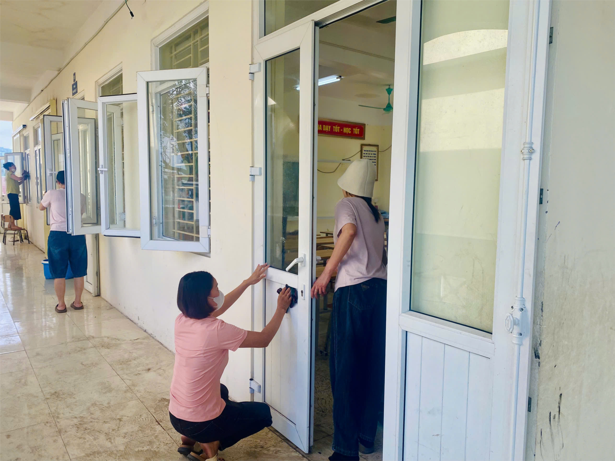 Đúng 7 giờ 30 phút sáng, toàn thể cán bộ, giáo viên nhà trường đã có mặt tại Ủy ban nhân dân xã Văn Giang để tham dự lễ phát động phong trào bảo vệ môi trường. Buổi lễ diễn ra trang trọng, thể hiện quyết tâm cao của cấp ủy, chính quyền và các đơn vị trong xã. Sau khi dự lễ, các thầy cô nhanh chóng trở về trường, bắt tay ngay vào công việc vệ sinh và sắp xếp lại lớp học. Không khí lao động khẩn trương, ai nấy đều hăng say, từ việc quét dọn, lau chùi cho đến kê lại bàn ghế ngay ngắn, kiểm tra lại các thiết bị phục vụ dạy học như máy chiếu, bảng tương tác, quạt điện, bóng đèn… để sẵn sàng chào đón học sinh trở lại trường trong những ngày sắp tới.